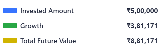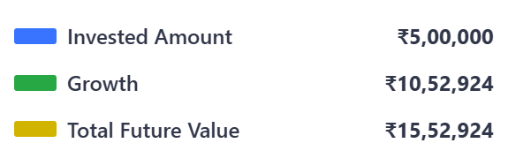 Example: If you invest ₹5,00,000 in a mutual fund with an average return of 12% p.a.